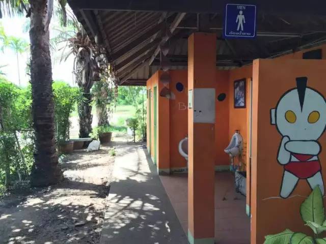 车队驶入了中途休息站,队员纷纷下车休息打尖。天生休闲热情的泰国人把一个小小的休息站都打扮充满人性和个性宣扬的不同凡响,洗手间更是妙趣横生,让队员们忘记了集合的召唤而流连忘返。