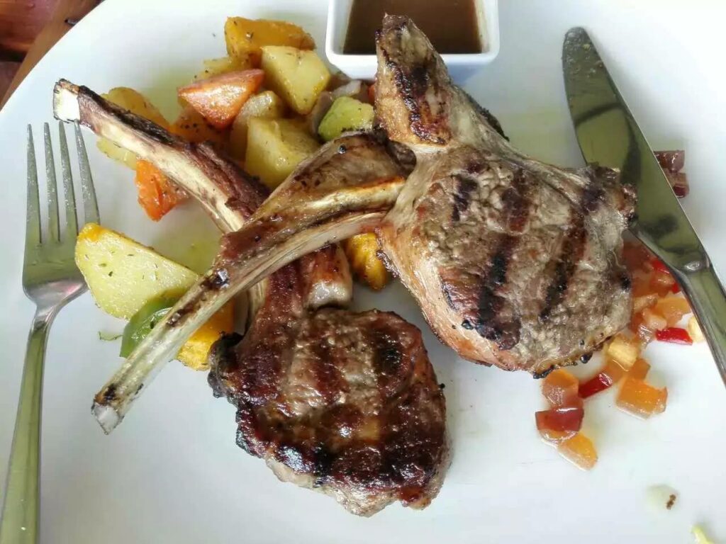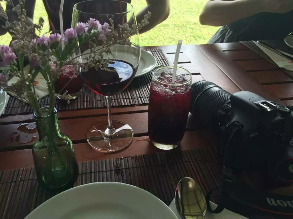 山庄为大家准备了丰盛的午餐,完全欧式西餐,牛排、羊排、起司色拉等,葡萄酒和葡萄原汁当然是必不可少的,背靠青山、木桌木凳、清风阵阵,一切的一切都是那么原汁原味。