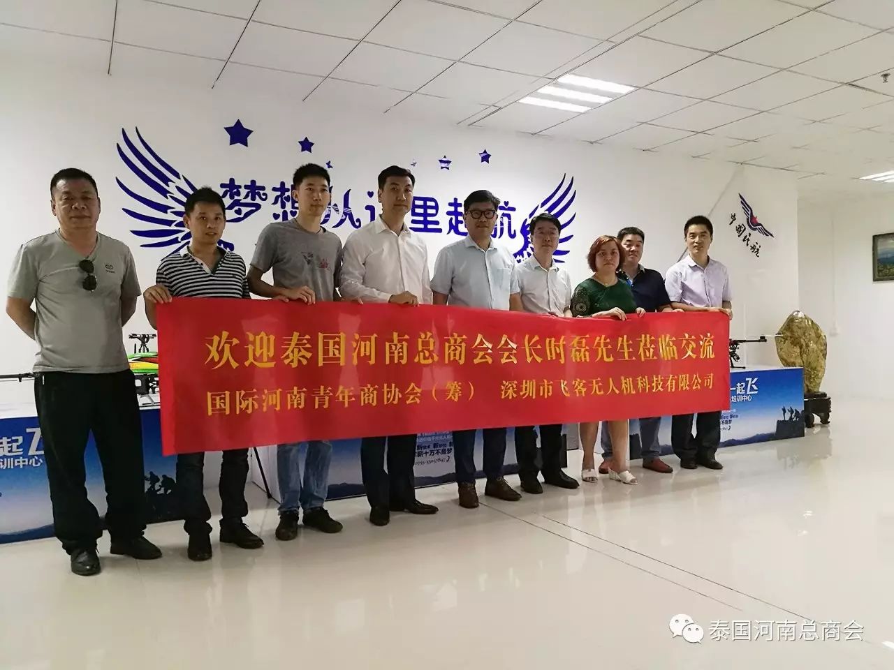 随后时磊会长等豫商一同参观了飞客无人机科技有限公司,由曾艳董事长介绍了当今无人机新发展和新技术。在座豫商就协同合作发展达成初步共识。