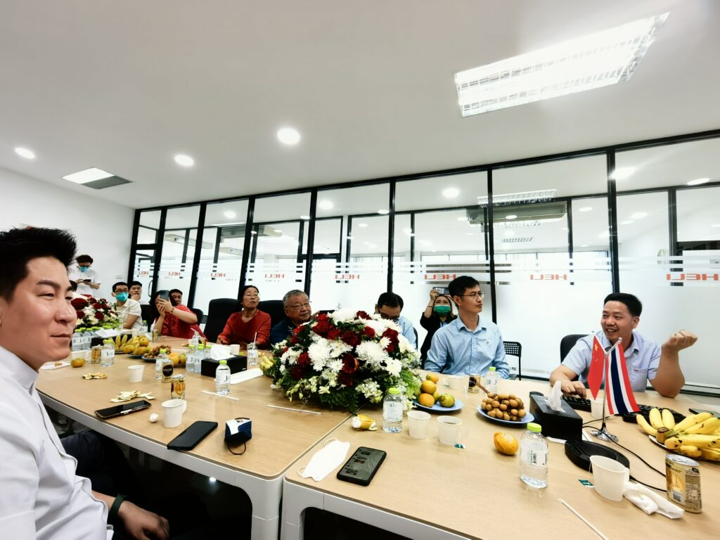 2022年11月11日上午,阳光明媚,碧空万里,泰国河南总商会代表团一行30余人到访合力东南亚有限公司,受到合力全体人员的热情接待。参加本次活动的有泰国河南总商会常务副会长赵韶林(泰丰钼业有限公司董事长),执行会长李培(荣晟国际有限公司董事长), 副会长兼秘书长路少奎(泰国卉爱有限公司总经理), 副会长李长江(High Efficiency Co.,Ltd炼油工厂总经理), 副秘书长法俊楠、于春晓、曹瑞鸿、 龙江华、杨一林、冯亮及相关理事、会员单位。合力东南亚公司陈许红总监受公司总经理花建峰委托,代表合力对来访嘉宾表示热烈欢迎,对大家给予合力的信任和一贯支持表示由衷感谢。双方希望通过此次活动来增进相互了解、深化务实合作、以及在双方感兴趣的方面进行友好座谈。