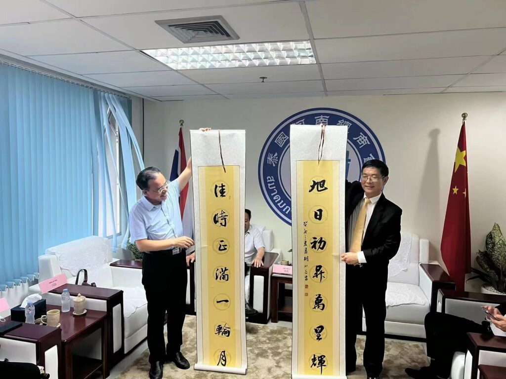 刘超会长对侨办代表团在繁多的行程中安排出时间拜访我会表示衷心感谢,并向侨办介绍我会目前会员有400余人,伴随着中原发展,近20年来我河南乡亲来泰发展人数增加以及事业发展,我们商会也迅速壮大,涵盖了老中青三代华侨,但是相比于潮汕等老华侨,我们都属于新侨。大家团结互助、共同发展商会,并同时兼顾了同乡会的职责。刘超会长同时表示通过此次拜访,让我们对侨办有了深入的了解,为我会后续侨务工作开展指明了方向。