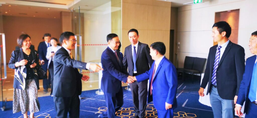 泰国河南总商会参加欢迎和座谈会的有: 会长刘超、常务副会长祝梅娜、常务副会长赵韶林、执行会长李培、副会长兼秘书长路少奎、副会长田华、副会长黄海函、副秘书长杨一林、 副秘书长龙江华、副秘书长冯亮、 副秘书长曹瑞鸿、副秘书长于梦歌、 理事钱清玉、理事曹传亮、理事经磊、中电建十一局宋茂兴、 建龙微纳宁红波。