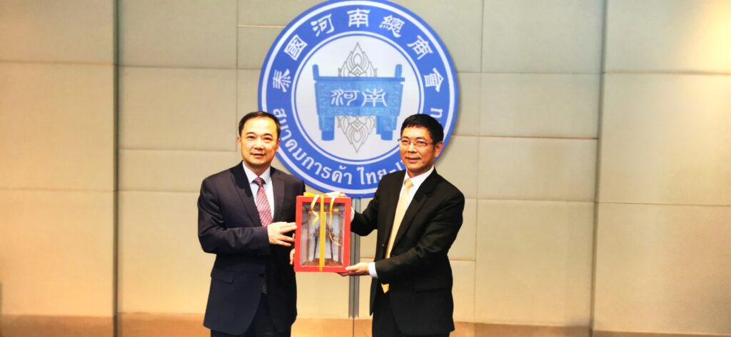 2023年6月27日郑州代表团拜访泰国河南总商会 2023年6月27日下午,何雄市长带领郑州市代表团一行六人莅临泰国河南总商会,受到了泰国河南总商会刘超会长、祝梅娜常务副会长、赵韶林常务副会长及在泰多位副会长、理事、会员及企业代表 的热烈欢迎。此次来访目的旨在加强郑州市与泰国河南总商会相互了解、促进郑州与泰国之间的经贸往来。