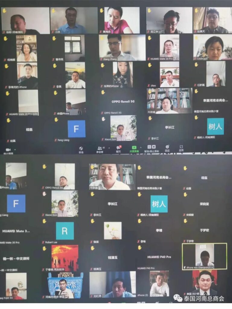 由于泰国新冠肺炎疫情的影响与泰国防疫的相关法规要求,本次会议采取网络线上视频会议的形式举行。会长刘超、常务副会长祝梅娜、牛跃峰、赵韶林、余猛、执行会长李培、副会长路少奎、张翔、朱琳、李涛、李长江、张颖卓、李常军、刘少毅、李玉忠、田华、黄海函等40多位理事参加了本次会议。应参加理事人数48人,实参会人数44人,带着300多名商会会员的重托,符合会议法定人数。本次会议由副会长路少奎兼秘书长主持。