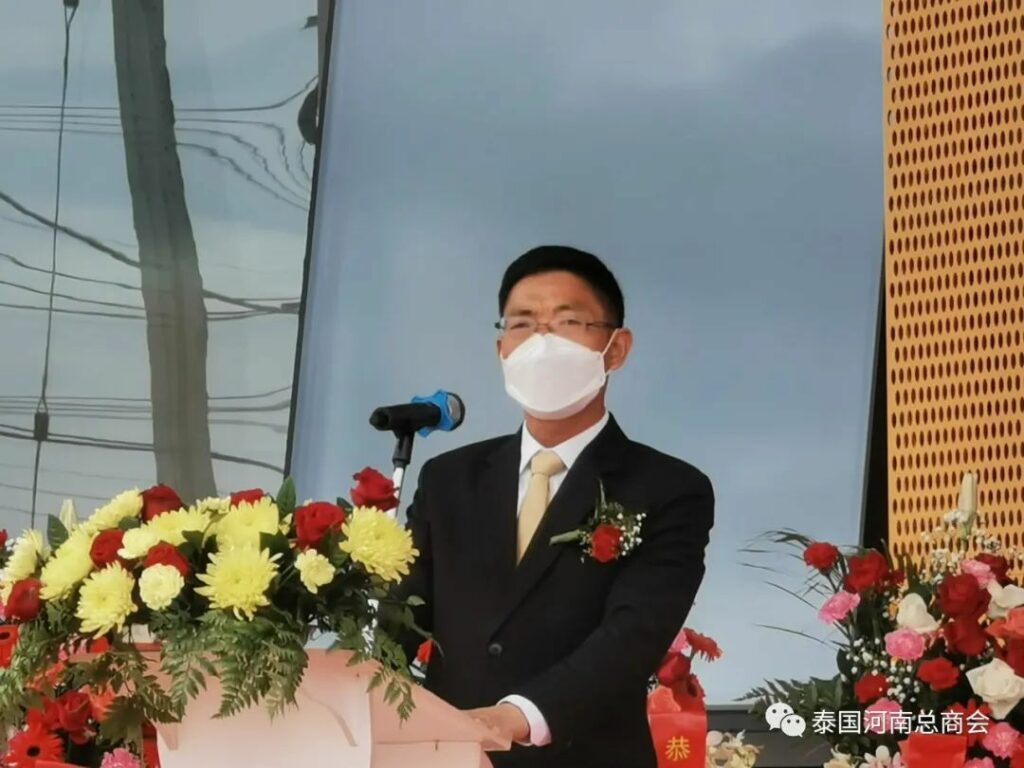 泰国河南总商会会长刘超带领常务副会长祝梅娜、牛跃峰、赵韶林、余猛、执行会长李培、副会长路少奎、张翔、李长江、刘少毅、田华、副秘书长杨一林一行出席典礼仪式。