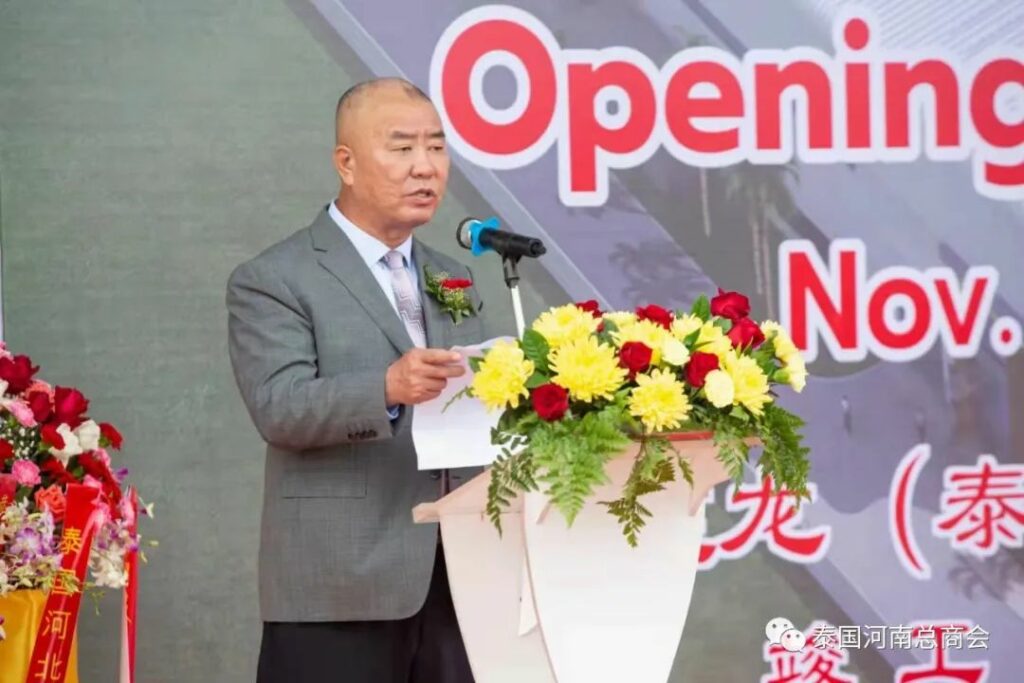 泰国河南总商会刘超会长代表商会热烈祝贺建龙泰国竣工投产。他说:"洛阳建龙公司是中国生产吸咐类分子筛产品的高新技术企业,多项科研成果代表着国内外的先进水平,是中国这个行业的优秀代表。今天建龙人带着先进的技术,优秀的管理团队,优秀的企业文化,做为河南第一家来泰国的上市公司来这里建设工厂,为泰国吸咐类分子筛领域填补了空白,这是我们河南人的骄傲,也是我们在泰国河南乡亲的骄傲。相信来泰国的建龙人在李董事长的领导下,在李罗仆总经理的带领下一定能弘扬好我们河南人的光荣传统,发扬光大建龙人的优秀企业文化,努力工作奋发进取,为建龙更辉煌的事业,为泰国的经济发展做出更大贡献。"