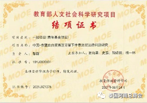 2.参与2018年教育部人文社会科学研究 青年基金项目,项目名称:中国-东盟自由贸易区背景下中泰边贸法律问题研究,项目号:18YJC820031,结题。