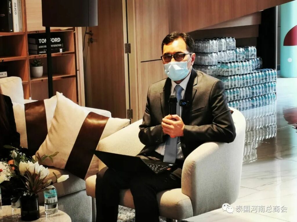 2021年11月21日,泰国河南总商会走进企业系列之三——泰国中文律师事务所《后疫情下的泰国投资法律风险防范与商业机遇》企业法律讲堂(线上直播与线下授课)在泰国曼谷成功举办。(本次讲座录播链接:https://youtu.be/cQZxozXYapY )